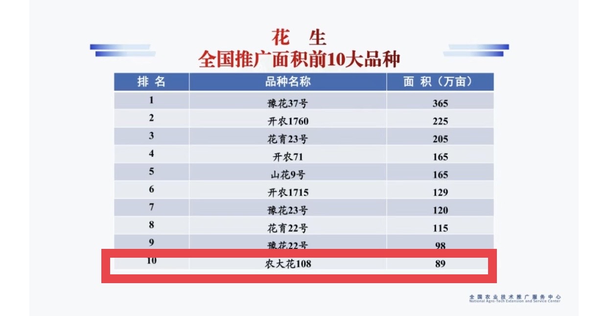 选育的玉米品种“MY73”和花生品种“农大花108”凭借优异的适应性、丰产性和广泛的种植表现,双双入选全国推广面积前十榜单。