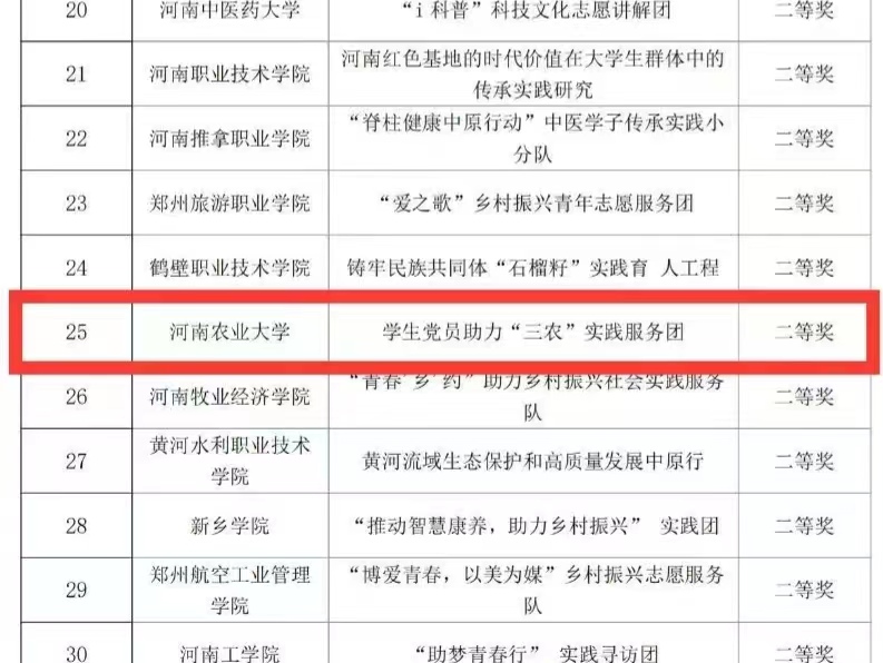 本网讯(通讯员 王佳田)3月30日,河南省教育厅公布了河南省普通高等学校“出彩中原”大学生社会实践活动项目结项和获奖名单。91吃瓜