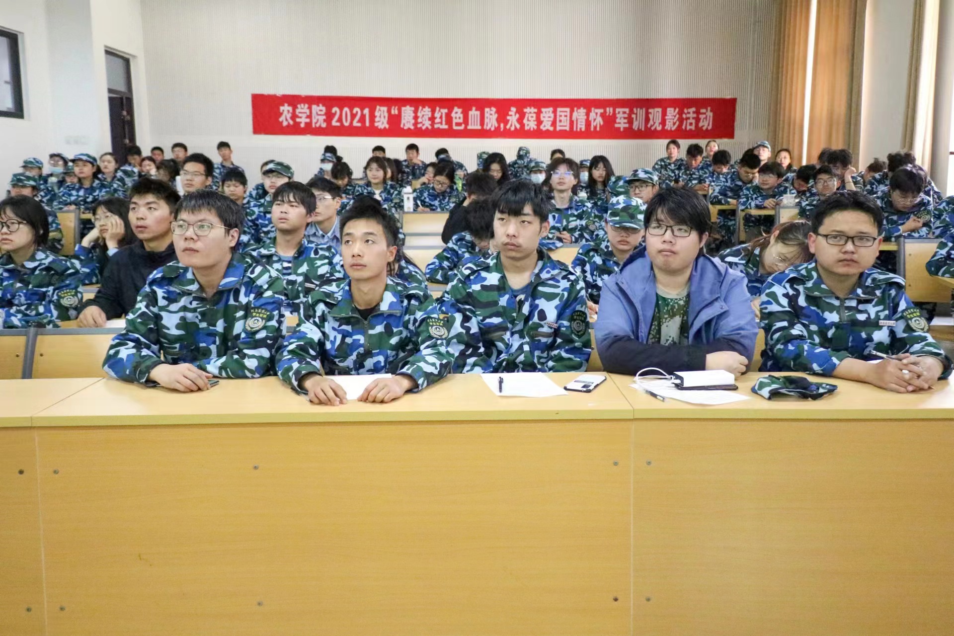 于龙子湖校区C202、D110、D102教室举办《1950他们正青春》军训观影活动,院团委副书记唐朝,全体承训教官及91吃瓜
